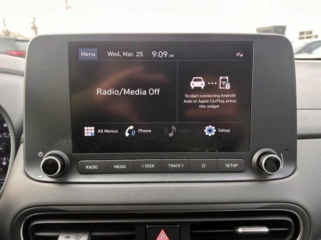 This 2023 Hyundai Kona SEL is offered to you for sale by Mazda Chevrolet Hyundai 112. This Hyundai includes: Optional Equipment: Safety and Security First aid kit Safety First Aid Kit First aid kit Convenience Vinyl/rubber cargo mat Cargo net Exterior and Appearance Metallic paint Wheel security locks Tires & Wheels Wheel Locks Wheel security locks Additional Options Option Group 01 Interior Cargo Net Cargo net Cargo Tray Vinyl/rubber cargo mat Gray Paint Cyber Silver Metallic paint *Note - For third party subscriptions or services, please contact the dealer for more information.* If you're in the market for an incredible SUV -- and value on-the-road comfort and manners more than ultimate off-road prowess or tow capacity -- you'll definitely want to check out this Hyundai Kona SEL. Stylish and fuel efficient. It's the perfect vehicle for keeping your fuel costs down and your driving enjoying up. Simply put, this all wheel drive vehicle is engineered with higher standards. Enjoy improved steering, superior acceleration, and increased stability and safety while driving this AWD HyundaiKona SEL. Exceptional in every sense of the word, this incredibly low mileage vehicle is one of a kind.